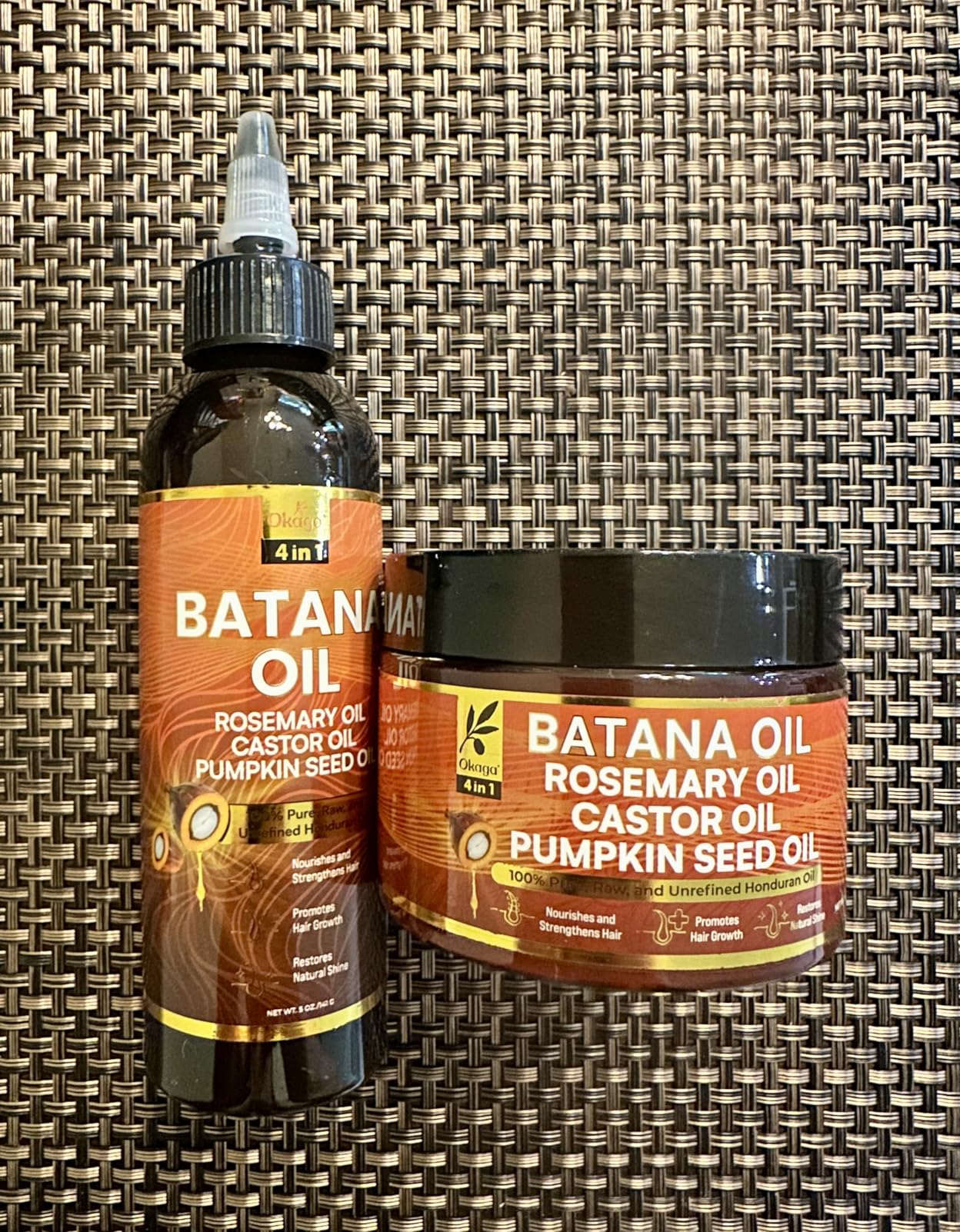 If you’re tired of dealing with thinning strands, a dry scalp, or frizz that won’t quit, this bundle was made for you. The Okaga Batana Oil & Cream Bundle pairs two powerhouse formulas—a lightweight, fast-absorbing Batana Oil for daily scalp care and shine, and a rich, nourishing Batana Cream for weekly deep conditioning. Together, they tackle dryness, brittleness, and lackluster hair at the root, helping you restore balance, strength, and natural radiance.